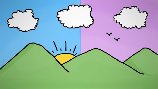 First, looking at the color violet, it looks like a sort of purple. The sky is blue — physicists tell us — because blue light in the sun's rays bends more than red light. We don't see the greenish hue, however, because of the sky's violet light.